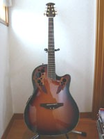 OvationのアコースティックギターCelebrity CC44。指の怪我も癒えた2009年7月に、橿原アルルの島村楽器で試奏したところ、ギグケース、ストラップ、弦、電池もつけて特価になったので、つい購入。弦高が高く、弾きにくいので、調整しないといけません。