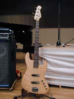 | Sound Tradeのベース(型番はたぶんTK01D)です。パッシブですがアクティブのようなレンジの広い音です。1994年頃大阪のBTLにて、奥の試奏室に連れ込まれて、ばかでかいアンプから出る音につられて買ってしまいました。 | これもSound Tradeのベースで、左のベースとほぼ同じ仕様でフレットレスモデルです。未だに弾きこなせず、部屋の外に出たことがありません。こちらは1998年に元バンドメンバーから譲ってもらいました。 |