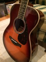 Yamahaのアコースティックギター。2014年8月に三木楽器心斎橋店にて購入。今は長男の下宿に遠征中です。